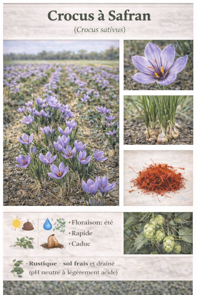 Le Crocus sativus, plante miraculeuse du safran, est un petit bulbe extraordinaire : rustique, élégant, économique, très productif, et parfait pour les jardins, potagers en carrés, micro-fermes ou même les balconnières.
